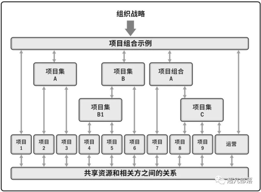 图1-2项目组合、项目集、项目和运营的关系(来自PMBOK第六版)